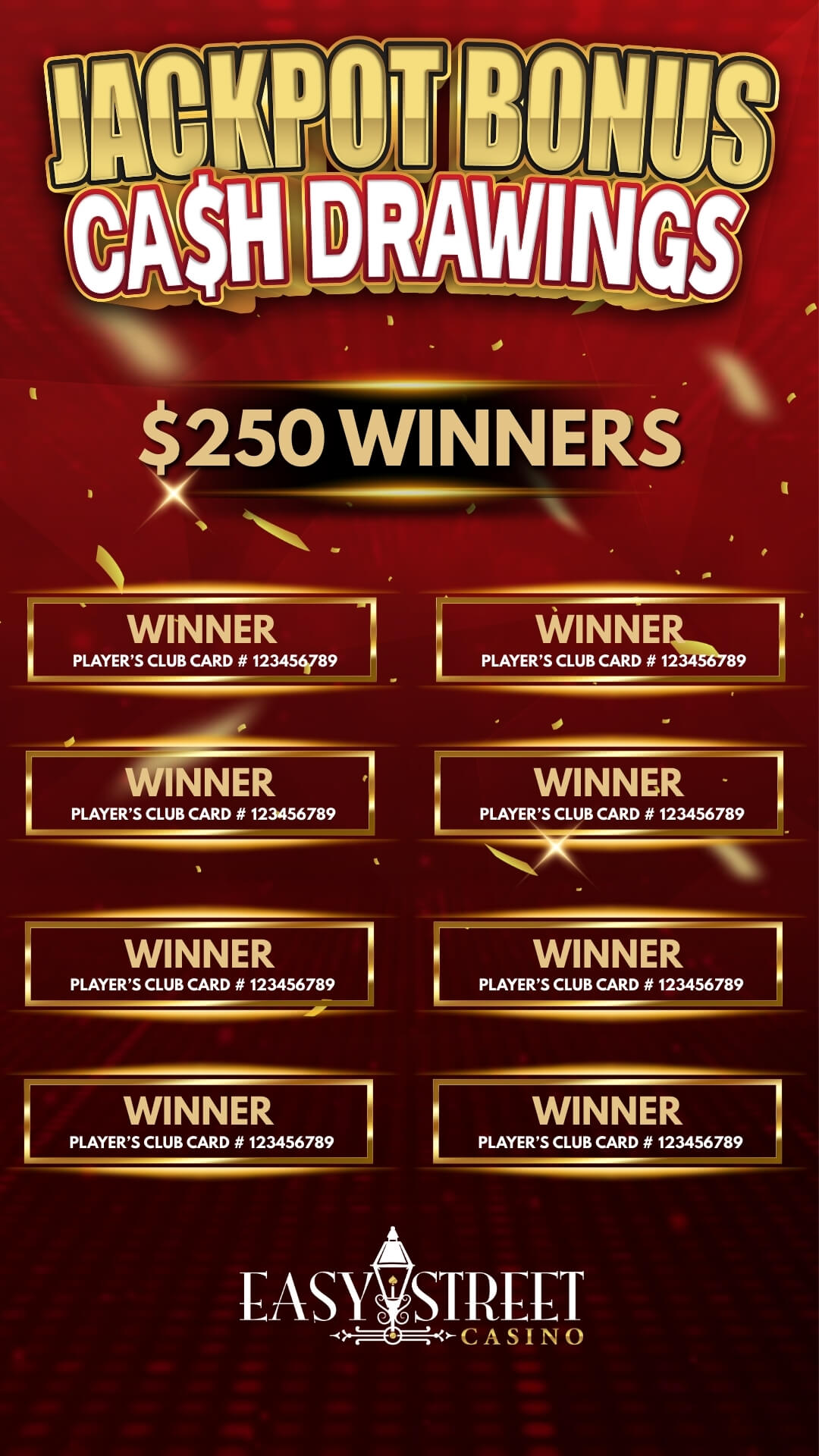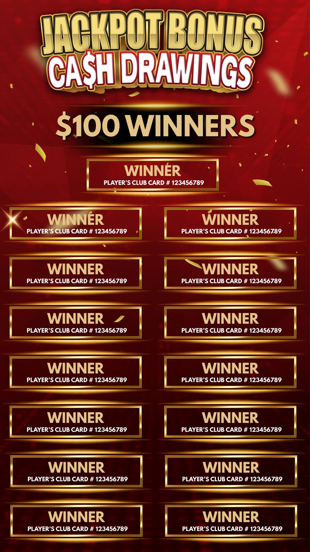 Every qualifying jackpot earns you an entry into our Jackpot Bonus Cash Drawing, giving you another chance to win more cash!